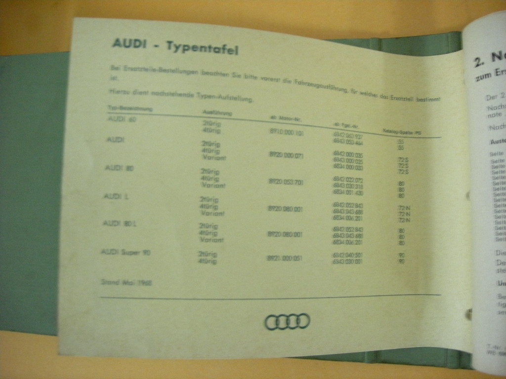 Ersatzteilekatalog für Auto Union, Audi L, 60, 80, Super 90